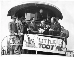 Bernhard August “Hardie” Gramatky, Jr. (April 12, 1907-April 29, 1979) was an American painter, writer, animator, and illustrator. In a 2006 article in Watercolor Magazine, Andrew Wyeth named him as one of America’s 20 greatest watercolorists. He wrote and illustrated several children’s books, most notably Little Toot.