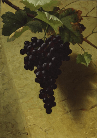 In 1860, Way came to the attention of visiting history painter Emanuel Leutze who encouraged him to pursue still life subject matter in the Düsseldorf style. Taking this advice to heart, Way began to paint fruit, primarily grapes, executed with great detail to form, a particular brilliance of light and typically staged against a dark background.…Despite the market demand and critical preference for vast panoramic landscapes and historic scenes, Way prospered, becoming the most important still life painter in the mid-Atlantic area during the late nineteenth century.
