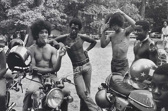 Bikers Take a Break / 1973, printed 1982 / Gelatin silver print / 11”x13 7/8”