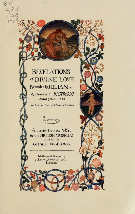 Title page for Revelations of Divine Love from a design by Phoebe Anna Traquair