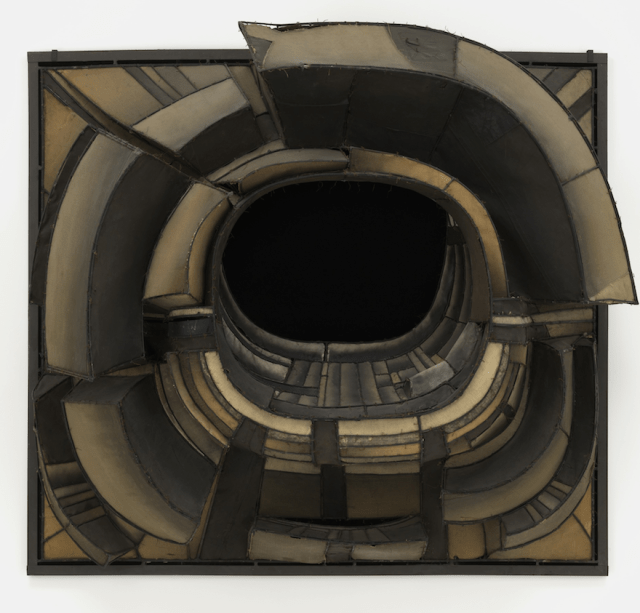 1961 / Welded steel, canvas, fabric, rawhide, copper wire, and soot / 80 1/4”x89”x34 3/4″ / MoMA, NYC