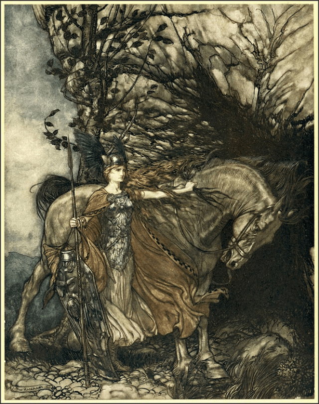 1910 / Pen and Ink and Watercolor / 18 1/2″x14 1/3″ / Illustration for The Rhinegold & the Valkyrie