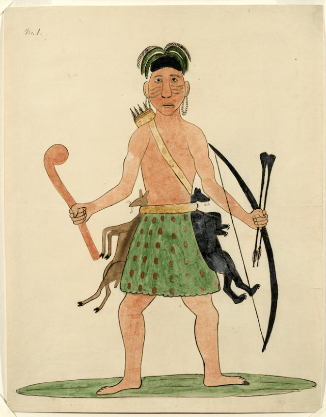 Iroquois Mythological Giant Hunter Holding Weapons,