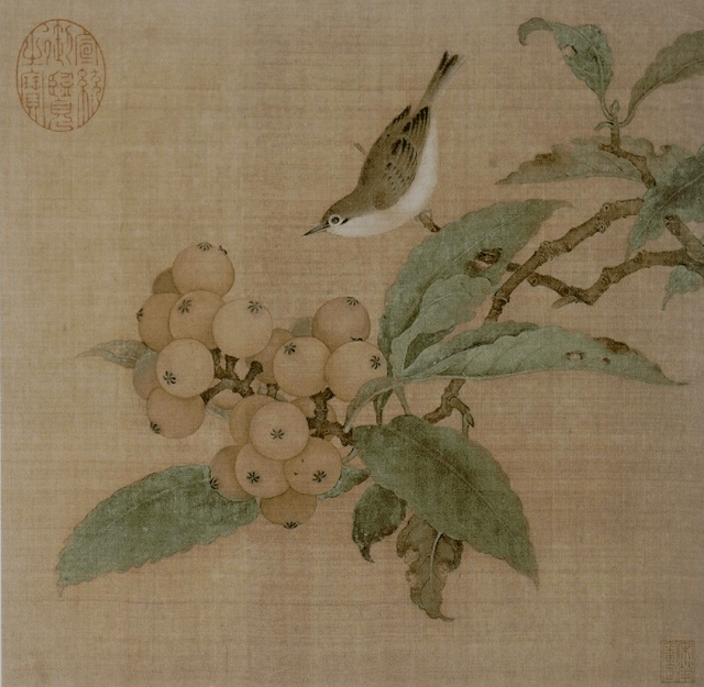 Bird Perching on a Loquat Branch by Lin Chun
