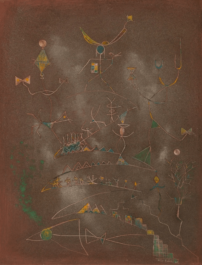 Alice Rahon (June 8, 1904-September 1987) was a French/Mexican poet and artist whose work combined pared-down figuration and materials including sand, string, and pulverized volcanic rock.