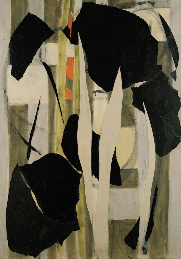 1955 / Collage of oil, paper, and canvas on canvas / 82-3/8″x57-3/4″ / Albright-Knox, Buffalo, New York