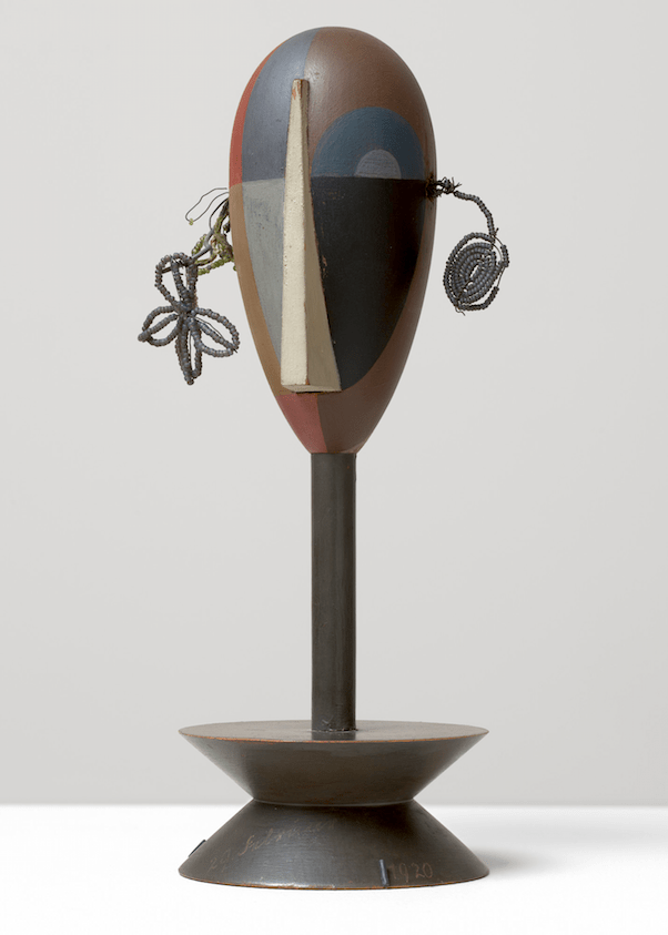 1. Head [possible self-portrait], 1920 / Oil on wood with glass beads on wire / MoMA, NYC