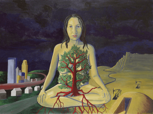 Self-Portrait: Between Dinetah and Mni Sota, 2009 / Acrylic on canvas / Artist’s collection