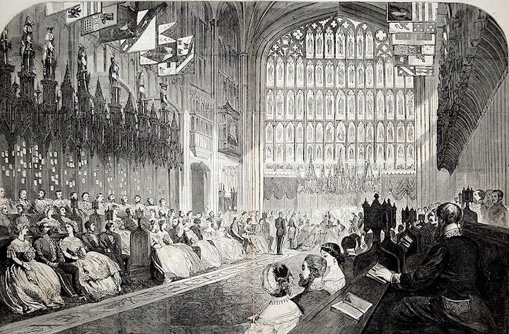 Engraved illustration from Harper’s Weekly newspaper of the wedding of the Prince of Wales (later King Edward VII) and Alexandra of Denmark / Harper’s Weekly newspaper dated 11 April 1863 / Artist unknown